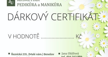 Dárkový certifikát je samozřejmě také možné si vyzvednout v tištěné formě kdykoliv u mne v salónku.